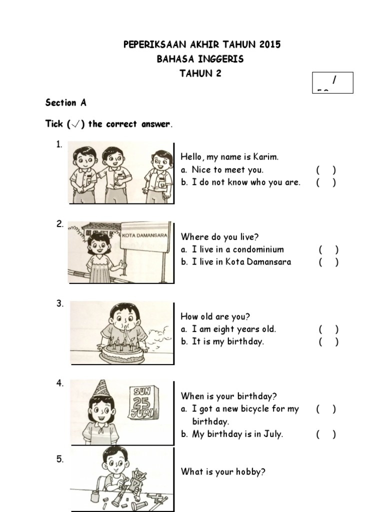 Contoh Soalan Peperiksaan Awal Tahun Tahun 2